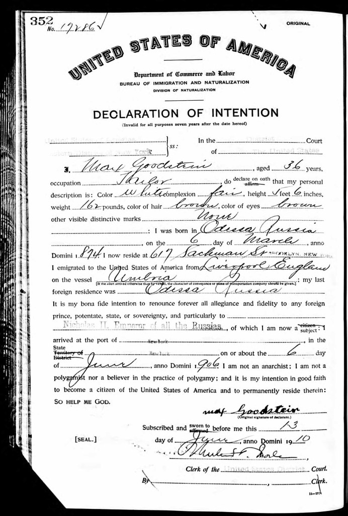 Max Goodstein Declaration of Intention Published January 7, 2018 at 1768 × 2617 in Celia’s Uncle Max and Family
