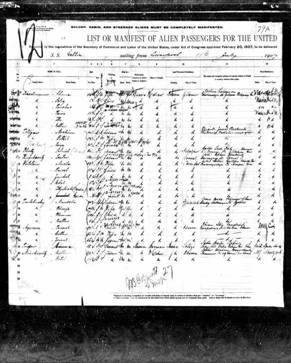 Isidore was born in 1887, although January 26, not December 28 as listed here, making him almost a year older than he may have thought. I say that because it’s likely that he didn’t actually know the date of his birth. So let’s say he was conscripted at age 16 (the age at which Jews were conscripted ranged from age 12!!! to 25 and the term could last for 25 years or more! To give you a sense of the whole picture, non-Jews could not be conscripted until age 18!) and served for 3.5 years. He would have been done by age 20. If he was conscripted at 18 he would have been 22 when he was discharged. (I use discharged loosely because we have no way of knowing how he left the Russian army).
